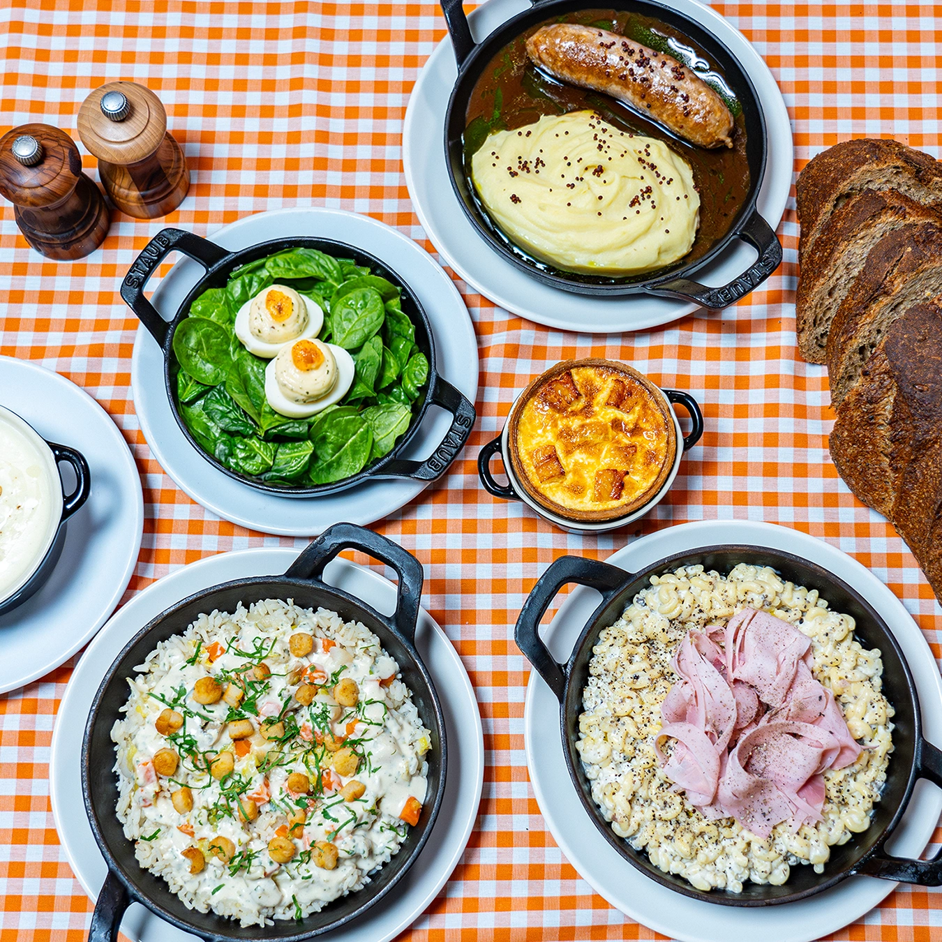 Notre carte explore les monuments du répertoire culinaire français — de l’œuf mayo d’anthologie à la blanquette mijotée — en les bousculant avec modernité.